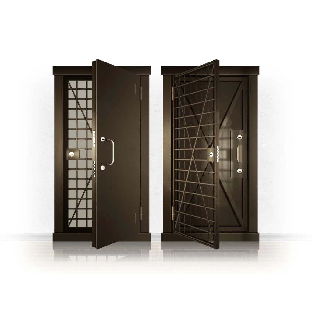 Металлические двери КХО и КХН представляют собой входные блоки, обладающие высоким уровнем взломостойкости и состоят из трех основных элементов: усиленного каркаса, сплошного металлического полотна и решетчатой двери. Дверной блок изготавливается из стального уголка 100*100 мм. Места крепления блока к стене цементируются и закрываются стальными наличниками шириной 40 мм. Крепеж заходит вглубь стены на 80 мм. В конструкции внешней створки монтируются ребра жесткости, для обшивки используется сталь толщиной не менее 3 мм. Внутренняя решетка изготавливается из прутка диаметром 16 мм. Размер ячеек решетки должен составлять не более 15 на 15 см. В точках пересечения прутья надежно приваривают друг к другу. В КХО и КХН необходимо поддерживать определенную температуру и влажность. Для этого внутреннее пространство глухой двери заполняется теплоизоляционным материалом, а по периметру двери приклеивается уплотнитель. Такие двери оборудуются замками с повышенным уровнем взломостойкости. Специализированные двери КХО и КХН в Буе могут быть оснащены сигнализацией, в конструкции могут быть проушины для навесного замка и элементами для опечатывания. Если идет речь о двери в комнату хранения оружия, в створке оборудуется окно для выдачи оружия и спец. средств, которое накрывается стальной дверцей.