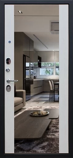 Надежная входная Дверь Вектор с зеркалом премиум класса по цене 48 609 руб. Большая толщина стали защитит от проникновения в ваш дом, квартиру или коттедж. Используется очень качественная фурнитура: замки, цилиндры, ручки, защелки. Покрытие и отделка двери изготовлено под внимательным контролем производителя. Дверь имеет долгий срок службы и гарантию.
